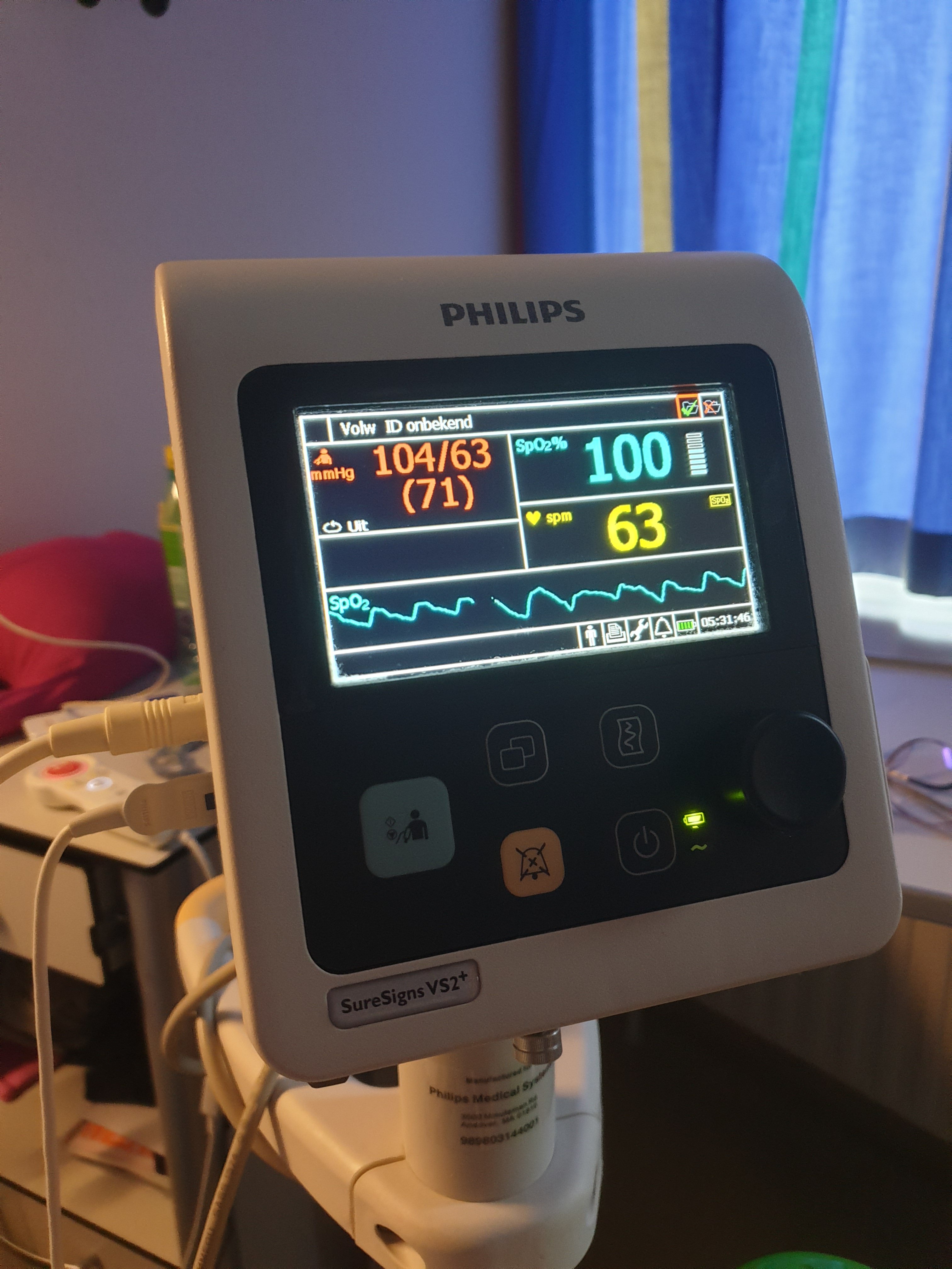 Ruim drie kwartier daarna (inmiddels was het 10 voor 3) kwam de collega om het opnieuw te proberen. Gelukkig prikte hij in 1 keer goed. Wat een opluchting! En kon ik mijn slaap weer hervatten.
