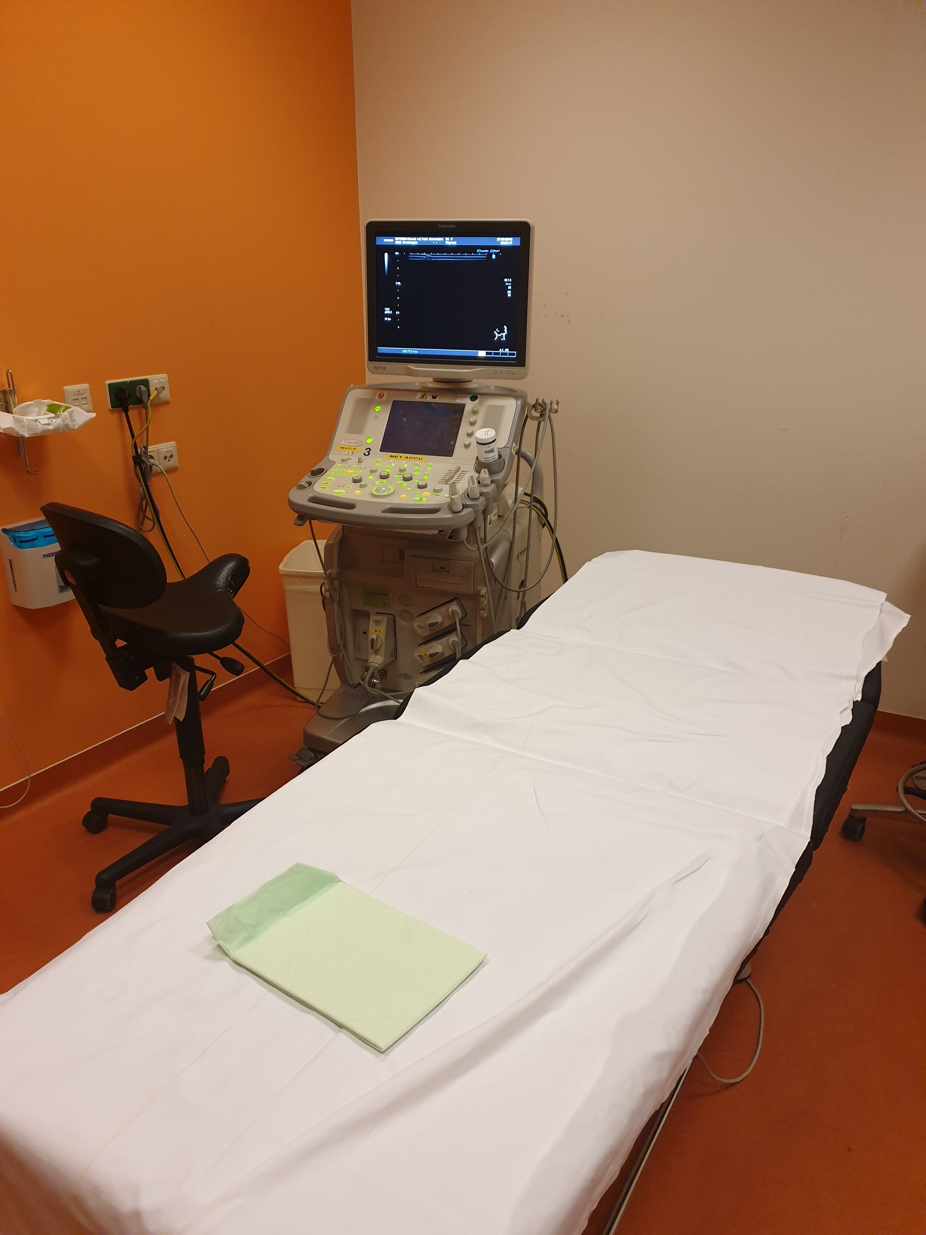 Uitleg echografieEven een ‘stiekem’ fotootje van de echo onderzoekskamer
