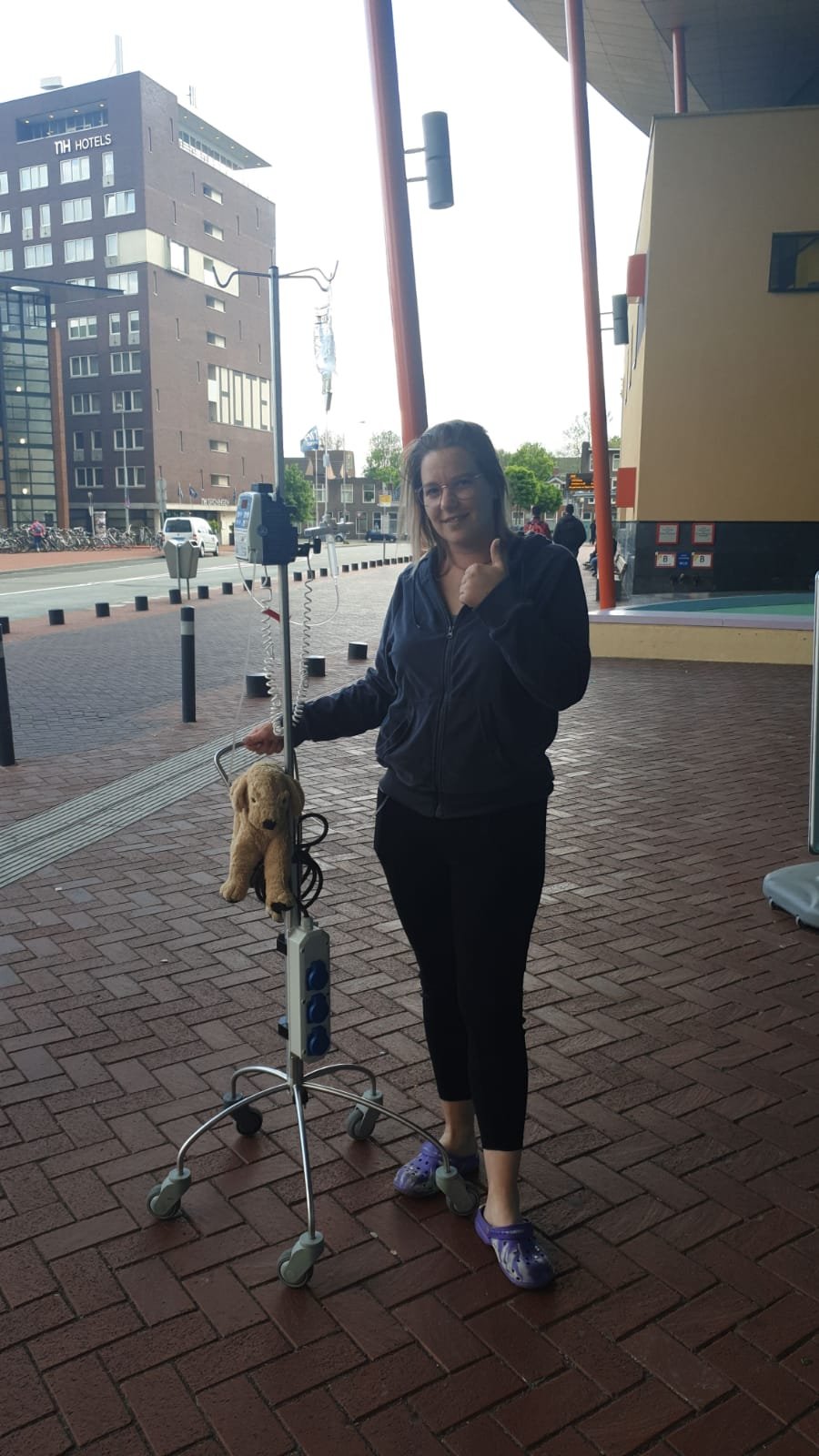 Ik ben al vroeg wakker door de lieve verpleegkundige die de meds klaargezet heeft om 6 uur. En nog steeds weet ik het zeker.. ik ben nog steeds geen ochtendmens, al zijn de mensen s’morgens nog zo vriendelijk tegen me! Ik kijk wat Netflix tot m’n ontbijt komt om 8 uur. Na het ontbijt fijn douchen en in de kleren. Rond kwart over 9 komt dokter blij ei op de kamer. Ik vroeg me af of de dokter een voetbaltype of tennistype is, dus ik vraag het aan hem. Zegt ie: mijn achternaam zegt al genoeg dacht ik zo (de beste man heet kruijff) voetbal dus… hij verteld me dat hij vanavond skyboxkaarten heeft voor FC Groningen. Ik wens hem veel plezier. Even terug naar mijn ziektebeeld… alles ziet er nog steeds goed uit en hij stelt voor om dit thuis voort te zetten! Ik krijg rond 14 uur mijn ontslaggesprek en mag rond 15 naar huis. Ik bel Peter op om het goede nieuws te vertellen.