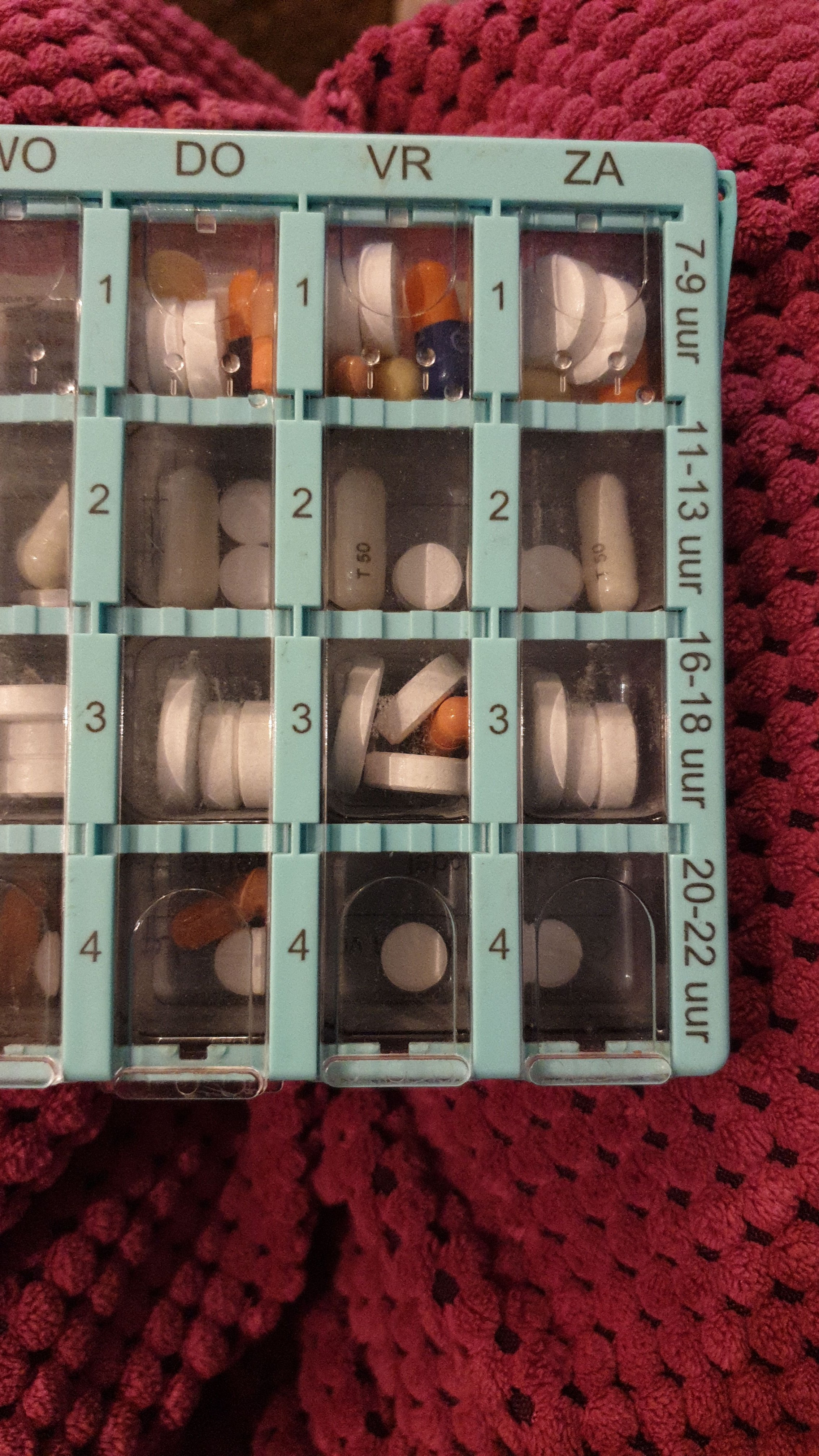 Als ik rond tien uur wil gaan slapen, vraag ik de verpleging om pijnstillers. Deze krijg ik behalve 2 paracetamol, niet, omdat ze volgens haar niet op mijn lijstje staan. Ik ben te moe om de discussie aan te gaan, maar snap er niks van. Ik gebruik normaal thuis een morfinetablet om te gaan slapen en nu zou ik deze niet hier mogen nemen? Ik heb ze zelf in m’n tas zitten. Maar besluit me netjes te houden aan het ziekenhuisregelement. Hier ga ik morgen nog wel een mijn zegje over doen.