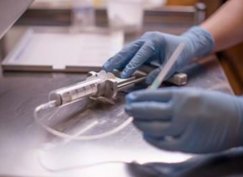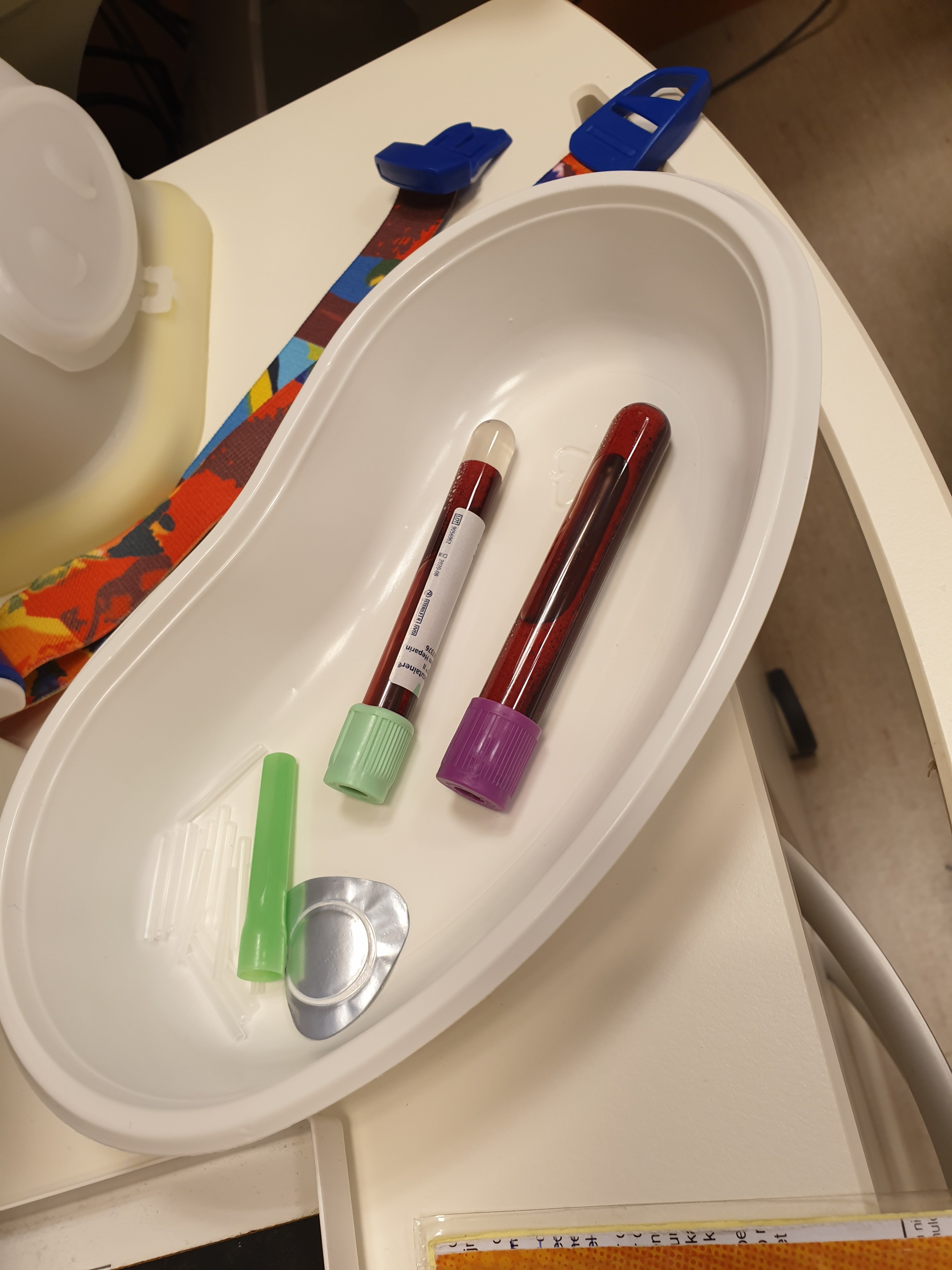 S’morgens om 6 uur word ik al gewekt door de verpleegkundige van de afdeling. Ze komt medicatie brengen, mijn bloeddruk, hartslag en temperatuur meten en checken of het infuus nog goed zit wat de avond ervoor nog geplaatst is. Verder krijg ik even tijd om me wat op te frissen. Om half 7 staat het onderzoeksteam naast mijn bed met buisjes blauwe vloeistof. De zogenoemde speurstof.
