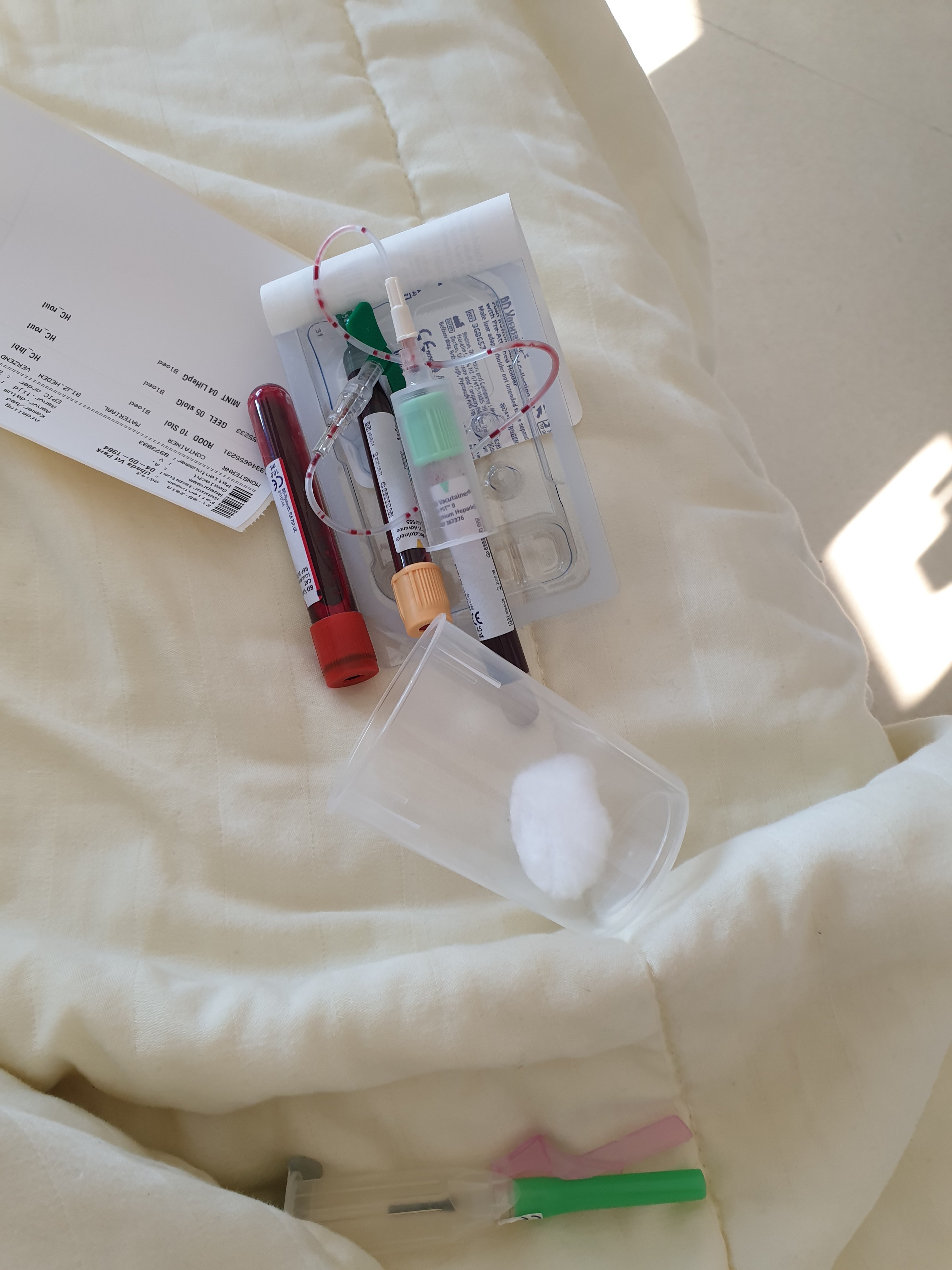 Rond 2 uur komt er een medewerker van het priklab om mijn infuus om te zetten. Helaas was dit geen priktalent. Na 2 keer mis prikken en het nodige geklaag van mijn kant uit, wilde ze het overdragen aan een collega. Die zou zo komen…